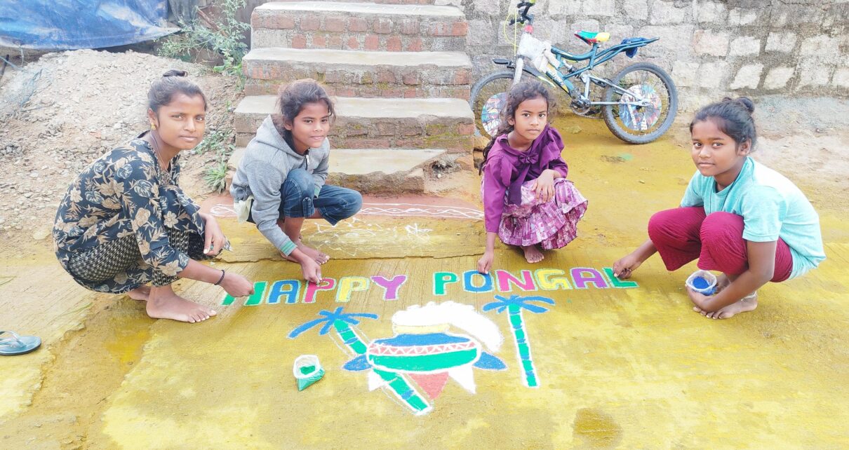 సంక్రాంతి ముగ్గులతో ఎస్సీ కాలనీ శోభాయమానం.