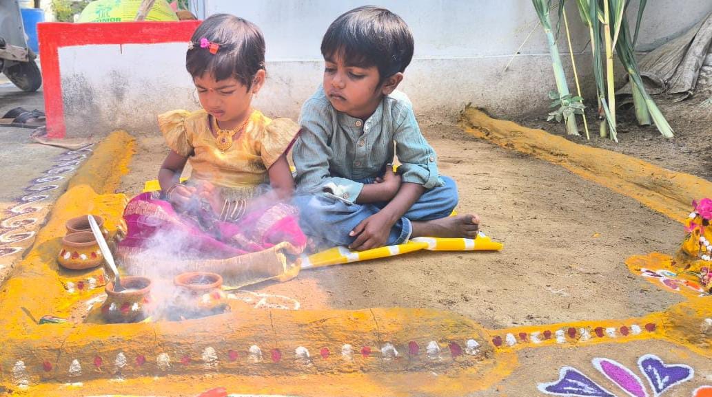 16 Viewsసిద్దిపేట జిల్లా రాయపొల్ మండల పరిధిలోని రాంసాగర్ ఎస్సీ కాలనీలో చిన్నారులు సంక్రాంతి పండుగను పురస్కరించుకుని ఉదయాన్నే లేచి కలపు చలి అందమైన ముగ్గులు వేసి గ్రామాన్ని పండుగ వాతావరణంతో నింపారు. ఇళ్ల ముందర రంగురంగుల ముగ్గులు వేస్తూ “హ్యాపీ పొంగల్” అంటూ సందేశాలు రాస్తూ పండుగ శోభను మరింత పెంచారు. ఈ సందర్భంగా మండల ప్రజలు గ్రామ ప్రజలు సుఖసంతోషాలతో, ఆయురారోగ్యాలతో, పాడిపంటలతో సుభిక్షంగా ఉండాలని కోరుకున్నారు. పిల్లల ఉత్సాహం, వారి కళాత్మక ప్రతిభ […]