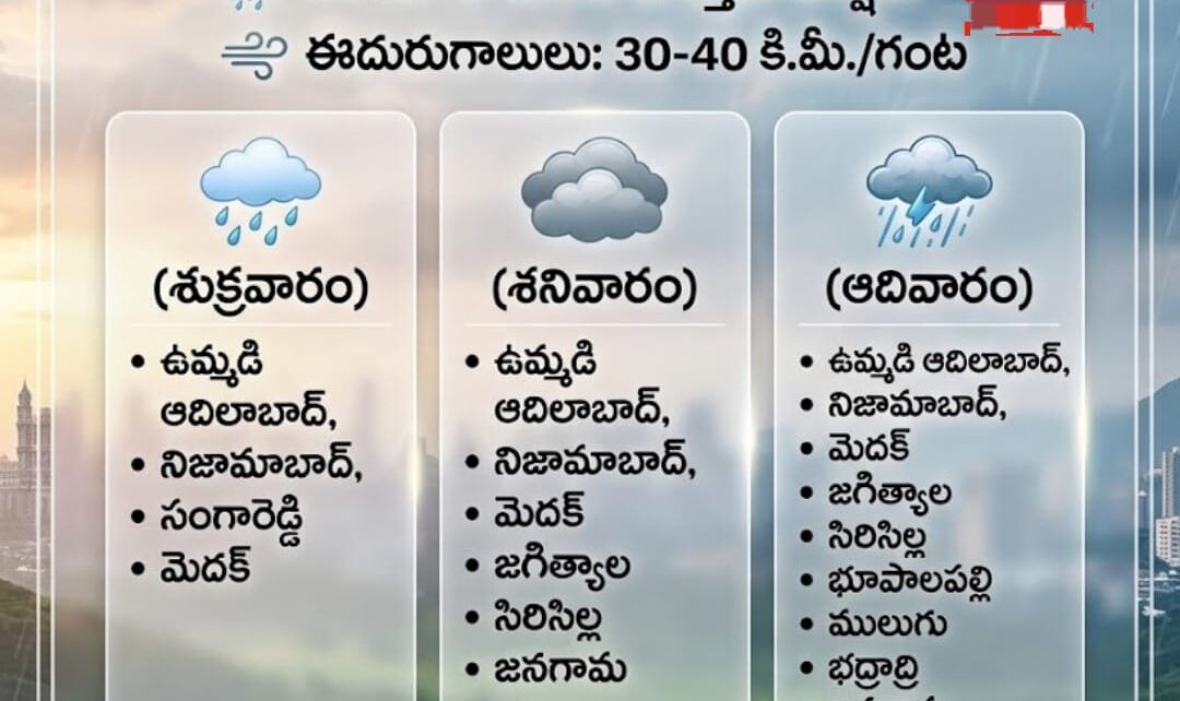 తెలంగాణలో రాబోయే 3 రోజుల్లో భారీ వర్షం..