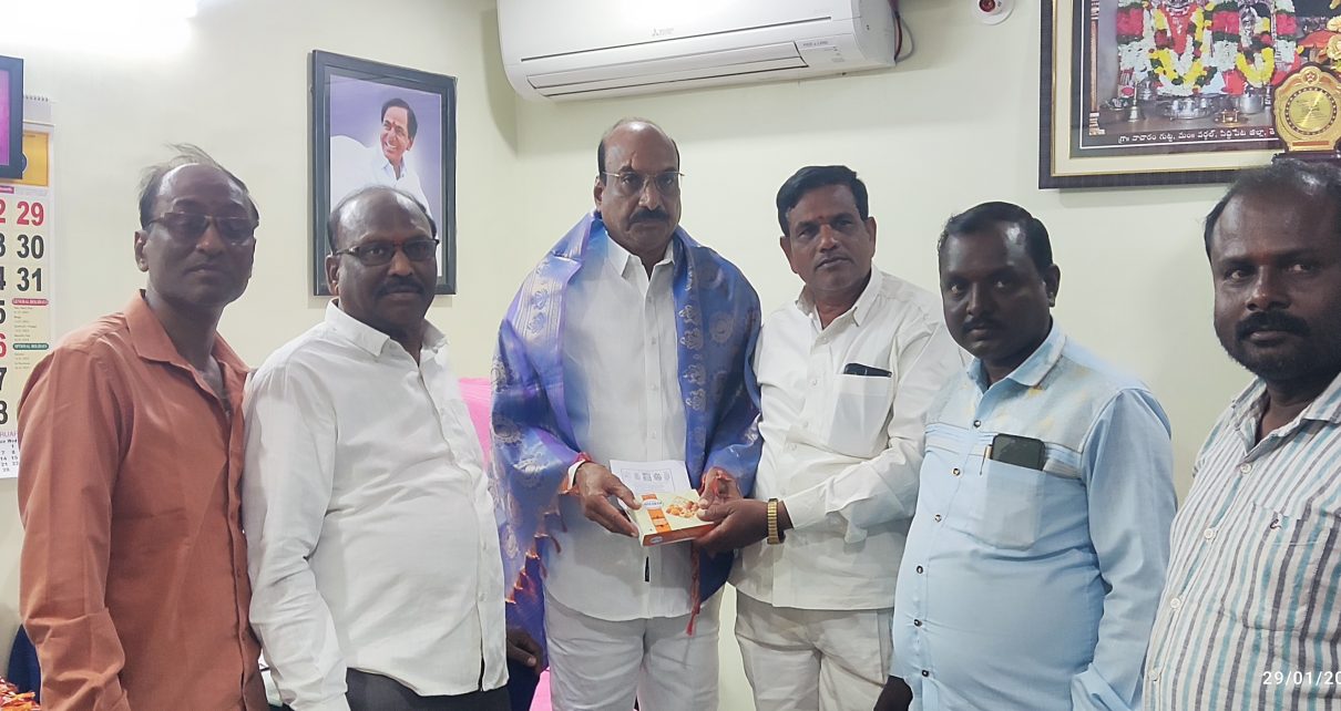 192 Views గజ్వేల్ లో ఎమ్మెల్సీ యాదవరెడ్డి కి యదాద్రి భువనగిరి జిల్లా కాచారం రేణుకా ఎల్లమ్మ దేవాలయం వార్షికోత్సవ వేడుకలు వచ్చేనెల 13 నా నిర్వహించనున్న సందర్భంగ వంగపల్లి అంజయ్య స్వామి ఎమ్మెల్సీ యాదవరెడ్డి కి, మున్సిపల్ చైర్మన్ ఎన్ సి.రాజమౌళి కి, ఆరవ వార్డు కౌన్సిలర్ బబ్బురి రజితకు ఎల్లమ్మ దేవాలయ వార్షికోత్సవ ఆహ్వాన పత్రిక అందజేశారు. ఈ సందర్భంగా ఎమ్మెల్సీ యాదవరెడ్డి మాట్లాడుతూ దైవారాధనతోనే మానసిక ఉల్లాసం కలుగుతుందని వంగపల్లి అంజయ్య స్వామి […]