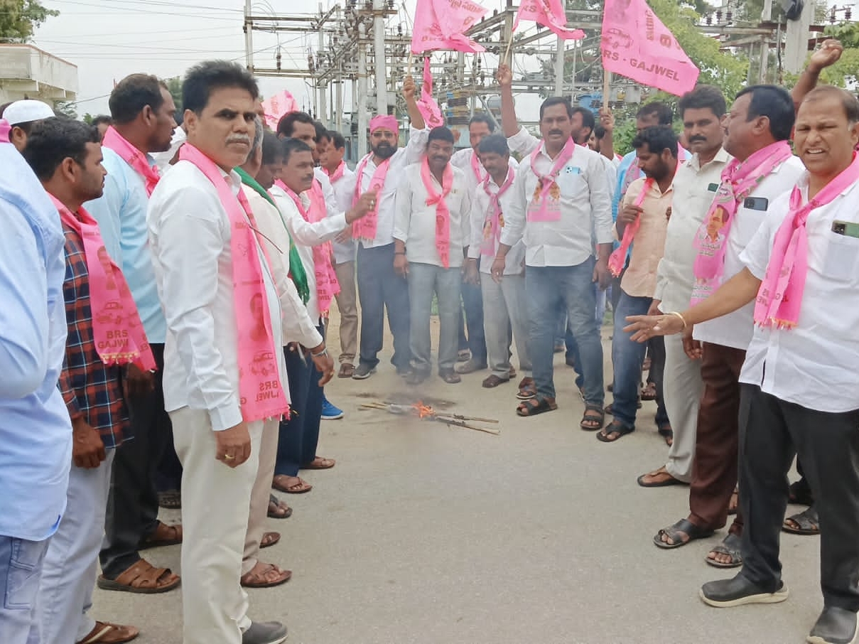 జగదేవపూర్ : టీపీసీసీ అధ్యక్షుడు రేవంత్ రెడ్డి వ్యాఖ్యలకు నిరసనగా బుధవారం జగదేవపూర్ మండల కేంద్ర బీఆర్ ఎస్ పార్టీ మండల అధ్యక్షులు శ్రీనివాస్ గౌడ్ ఆధ్వర్యంలో ఎల్లమ్మ దేవాలయం నుంచి ఊరేగింపుతో సబ్ స్టేషన్ కు చేరుకొని రేవంత్ రెడ్డి దిష్టిబొమ్మను దహనం చేశారు.