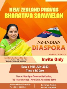 అలాగే ఆక్లాండ్ లో ఉదయం 9 కి భారత జాగృతి న్యూజిలాండ్ ఆధ్వర్యంలో వివిధ రాష్ట్రాల ఎన్నారైలు ఏర్పాటు చేసిన ప్రవాస భారతీయ సమ్మేళనం లో శ్రీమతి కవిత పాల్గొంటారు.