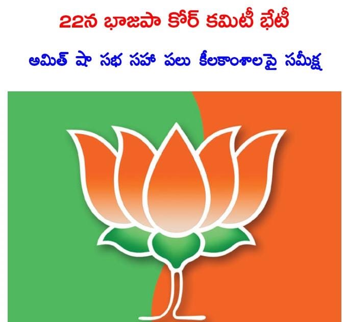 హైదరాబాద్: రాష్ట్ర శాసనసభ ఎన్నికల్లో గెలుపే లక్ష్యంగా చేపట్టిన కార్యక్రమాలను సమీక్షించడంతో పాటు కీలక అంశాలపై చర్చించేందుకు ఈ నెల 22న భాజపా కోర్ కమిటీ సమావేశం కానుంది. రాష్ట్రంలోని తాజా రాజకీయ పరిస్థితులు, ప్రజా సమస్యలపై పోరాటాలు, పార్టీ బలోపేతం, 119 అసెంబ్లీ నియోజకవర్గాల్లో ఇతర రాష్ట్రాలకు చెందిన భాజపా ఎమ్మెల్యేల పర్యటనలు తదితర అంశాలపై చర్చించనున్నారు. ఈ సమావేశానికి భాజపా రాష్ట్ర అధ్యక్షుడు జి.కిషన్రెడ్డి, రాష్ట్ర ఎన్నికల ఇన్ఛార్జి ప్రకాశ్ జావడేకర్, పార్టీ రాష్ట్ర వ్యవహారాల ఇన్ఛార్జులు సునీల్ బన్సల్, తరుణ్ ఛుగ్ సహా ముఖ్య నేతలు హాజరు కానున్నారు. ఖమ్మంలో ఈ నెల 29న భాజపా అగ్రనేత, కేంద్ర హోంమంత్రి అమిత్ షా పాల్గొనే బహిరంగ సభకు జనసమీకరణ సహా ఇతర కీలకాంశాలపై సమావేశంలో సమీక్షించనున్నట్లు ముఖ్యనేత ఒకరు తెలిపారు.
