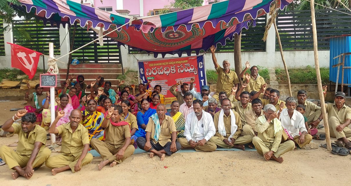 ని మండిపడ్డారు. నేడు రాష్ట్రజాతీయస్థాయిలో మేముచేసే పారిశుద్ధ్యం వలన అవార్డులు తీసుకుంటుంది అంటే ఆఘనత గ్రామపంచాయతీ కార్మికులకే దక్కుతుందన్నారు. మాకు గొంతెమ్మ కోరికలు మాకొద్దు కేవలం మాకు కావాల్సింది ఉద్యోగ భద్రత, ఆరోగ్య భద్రత, పిఎఫ్, ఈఎస్ఐ సౌకర్యం కల్పించడంతోపాటు కనీస వేతనం రూ.19500 చెల్లించాలని డిమాండ్ చేస్తున్నాం మాకున్యాయమైన డిమాండ్లు ప్రభుత్వం తక్షణమే అమలు చేయాలని గ్రామపంచాయతీ కార్మికులు తెలిపారు.