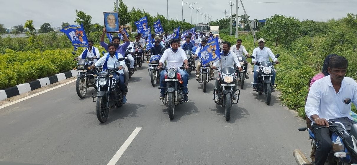 సీఎం సొంత నియోజకవర్గం గజ్వేల్ మండలంలోని వివిధ గ్రామాలను చైతన్య పరుచటకై నియోజకవర్గ కమిటీ ఆధ్వర్యంలో బహుజన చైతన్య యాత్ర నిర్వహించడం జరిగింది. ఇట్టి బహుజన చైతన్య యాత్ర పిడిచేడ్ ,అహ్మదీపూర్ ,సింగాటం, భూర్గుపల్లి ,దాచారం తిరిగి గజ్వేల్ చేరుకుని, గజ్వేల్ ప్రజ్ఞాపూర్ మున్సిపాలిటీ పరిధిలోని మహానీయలు సాకలి ఐలమ్మ, బహుజన చక్రవర్తి ఛత్రపతి శివాజీ ,భారత రాజ్యాంగ నిర్మాత బాబాసాహెబ్ అంబేద్కర్ గారికి నివాళ్ళు అర్పించడం జరిగింది. అనంతరం జిల్లా ఉపాధ్యక్షులు ఓం ప్రకాష్ గారు మాట్లాడుతూ గజ్వేల్ నియోజకవర్గంలోని గడప గడపలో స్ఫూర్తిని నింపేల బహుజన చైతన్య యాత్ర నిర్వహించడం జరిగింది అన్నారు.అగ్రకుల కబంధ హస్తాల్లో బందీ ఐన బహుజనులు చైతన్యం అవ్వాల్సిన అవసరం ఉందని అన్నారు.నియోజకవర్గ ఇంచార్జి కొండనోళ్ళ నరేష్ గారు మాట్లాడుతూ రాబోయే రోజుల్లో గజ్వేల్ నియోజకవర్గంలో ప్రతి ఇంట్లో బహుజన జెండా ఎగరవేయడం కోసమే ఈ బహుజన చైతన్య యాత్ర నిర్వహించడం జరిగిందని, గజ్వేల్ లో ఏనుగు జెండా ఎగురవేసి వరకు విశ్రమించమని అన్నారు. నియోజకవర్గ అధ్యక్షులు గూడూరి కర్ణాకర్ గారు మాట్లాడుతూ గజ్వేల్ లో అగ్రకుల పార్టీలకు దీటుగా సమాధానం చెప్పడానికే ఈ బహుజన చైతన్య యాత్ర నిర్వహించడం జరిగిందని, బాహుజనులు సొంత గూటికి రావాలని అన్నారు. నియోజకవర్గ ప్రధాన కార్యదర్శి కానుగుల రమణాకర్ గారు మాట్లాడుతూ బహుజనులా అభివృద్దే ఈ దేశ అభివృద్ధి అని అన్నారు. ఎక్కడ బహుజనులు చైతన్యం అవుతారో అని BC, SC,మైనారిటీ బంధుల పేరిటా బంగారు పంజరంలో బందిస్తున్నారని మండి పడ్డారు.ఈ కార్యక్రమంలో నియోజకవర్గ ఉపాధ్యక్షులు గుర్రం ఎల్లం గారు,కోశాధికారి మొండి కర్ణాకర్ గారు, మైనారిటీ కన్వీనర్ MD. అఖిల్ పాషా గారు , EC మెంబెర్ కనకప్రసాద్ గారు, కెత్తోజి వినోద్ గారు ,వివిధ మండలాల అధ్యక్షులు, గ్రామ ,బూత్ అధ్యక్షులు కార్యకర్తలు భారీ ఎత్తున్న పాల్గొన్నారు.