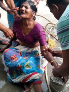 అరుపులు విని రక్షించిన యువకులు. తాళ్ళ సహాయంతో బావిలో నుండి పైకి లాగి రక్షించిన గ్రామస్థులు.