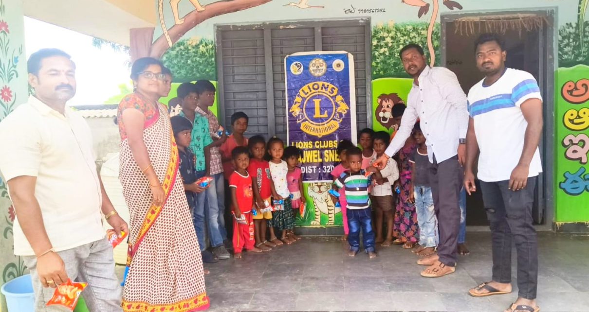 *సిద్దిపేట జిల్లా మర్కుక్ మండలం పాములపర్తి గ్రామంలోని అంగన్వాడీ కేంద్రంలో శుక్రవారం లయన్స్ క్లబ్ ఆఫ్ స్నేహ గజ్వేల్ వారి ఆధ్వర్యంలో చిన్నారులకు బిస్కెట్స్ చాక్లెట్స్ పంపిణీ చేశారు ఈ కార్యక్రమంలో పాల్గొన్న సామాజిక కార్యకర్త, తాండ బాలకృష్ణ గౌడ్ పాల్గొని వారు మాట్లాడుతూ లయన్స్ క్లబ్ సేవలు అభినందనీయం అని మానవ సేవే మాధవ సేవ అంటూ సమాజానికి లయన్స్ క్లబ్ అందిస్తున్న సేవలు చాలా గొప్పవి అని ప్రతి ఒక్కరూ సేవానిరతి కలిగి ఉండాలని అన్నారు* *ఈ కార్యక్రమంలో అంగన్వాడీ టీచర్ సంతోష,అంగన్వాడీ సిబ్బంది చిన్నారులు తదితరులు పాల్గొన్నారు…*