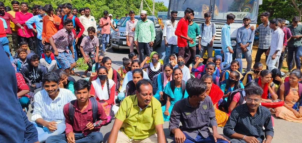 *బస్సు కోసం విద్యార్థులు రాస్తారోకో*