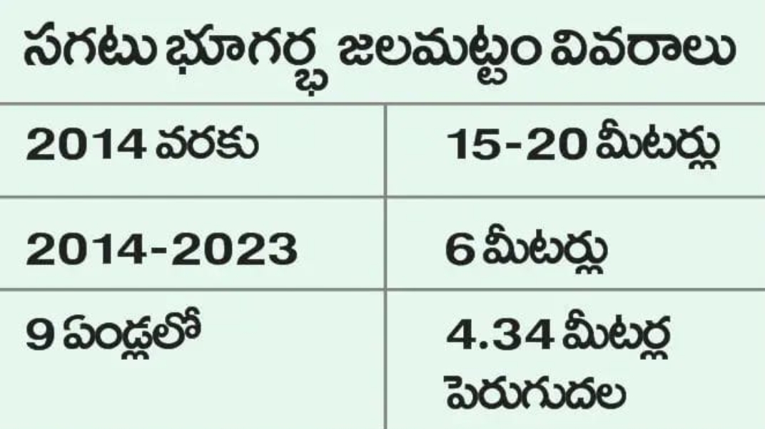 గడిచిన 9 ఏండ్లలో పెరిగిన సగటు భూగర్భ జల మట్టం సగటున 4.34 మీటర్లు