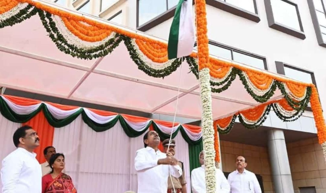 అనంతరం ముఖ్యమంత్రి జాతీయ పతాకాన్ని ఆవిష్కరించి, వందనం సమర్పించారు. జాతీయ గీతాలాపన చేశారు.