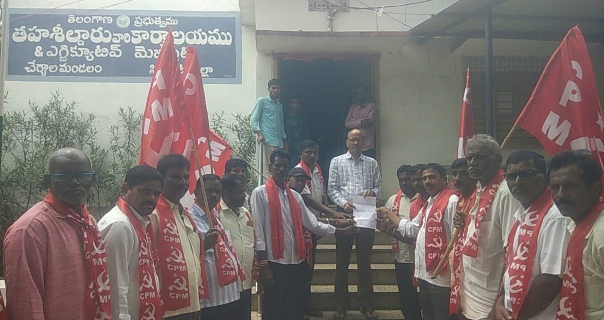 సెప్టెంబర్ 6 చేర్యాల: బిజెపి నరేంద్ర మోడీ కేంద్ర ప్రభుత్వం రోజురోజుకు నిత్యవసర వస్తువుల ధరలను విపరీతంగా పెంచుతూ పేద మధ్యతరగతి ప్రజల పైన మోయలేని భారాలు మోపుతున్న దాన్ని వెంటనే తగ్గించాలని సి పి ఐ ఎం మండల కార్యదర్శి కొంగరి వెంకట మావో ప్రభుత్వాన్ని డిమాండ్ చేశారు. చేర్యాల మండల తహసిల్దార్ కార్యాలయం ముందు సిపిఐఎం మండల కమిటీ, పట్టణ కమిటీ ఆధ్వర్యంలో బుధవారం రోజున ధర్నా నిర్వహించారు. అనంతరం పలు డిమాండ్లతో కూడిన మెమోరండాన్ని తాసిల్దార్ రాజేశ్వరరావు కి అందించారు. అనంతరం కొంగరి వెంకట మావో ధర్నాను ఉద్దేశించి మాట్లాడుతూ కేంద్ర రాష్ట్ర ప్రభుత్వాలు ప్రజాసంక్షేమాన్ని మరిచి ప్రజా వ్యతిరేక విధానాలను అవలంబిస్తున్నారని కేంద్రంలో నరేంద్ర మోడీ బిజెపి ప్రభుత్వం ప్రైవేటీకరణ పేరుతో ప్రభుత్వ సంస్థలన్నింటినీ ప్రైవేటు బడా కార్పొరేటు గుత్తాధిపతులకు ధారాధత్వం చేస్తూ ప్రజల మీద విపరీతమైన భారాలు మోపుతున్నారని దేశ సంపదనంతా ఆదాని అంబానీ టాటా బిర్లా లాంటి కోటీశ్వరులకు చేరే విధంగా ప్రజా వ్యతిరేక విధానాలను రూపొందిస్తూ ప్రజాసంక్షేమం కోసం ఉపయోగపడే సేవా రంగాలైన విద్యా వైద్యము విద్యుత్తు ఇంకా ఇతర రంగాలన్నింటినీ ఒక్కొక్కటిగా ప్రైవేటు పరం చేస్తూ పేద మధ్యతరగతి ప్రజలకు విద్యా వైద్యాన్ని దూరం చేస్తున్నారని పేదలు మధ్యతరగతి కుటుంబీకులు కార్మికులు రైతులు ఈ మోడీ ప్రభుత్వ విధానాల వల్ల అనేక ఇబ్బందులు పడుతున్నారని నిత్యవసర వస్తువుల ధరలు పెంచి జిఎస్టి పేరుతో ప్రభుత్వ ఖజానా నింపుకుంటూ ప్రజల సంక్షేమాన్ని పట్టించుకోవడంలేదని ఈ ప్రజా వ్యతిరేక విధానాలను వెంటనే మానుకోవాలని నిత్యావసర వస్తువుల ధరలను తగ్గించాలని ప్రజా పంపిణీ వ్యవస్థ ను పటిష్ట పరిచి 14 రకాల నిత్యవసర సరుకులను పేదలకు సబ్సిడీ ధరలపై పంపిణీ చేయాలని నిరుద్యోగ సమస్యను పరిష్కరించాలని కార్మికుల కు కనీస వేతనాలను రైతులు పండించే పంటలకు మద్దతు ధరను ప్రకటించి అమలు చేయాలని ఈ డిమాండ్ల ను వెంటనే పరిష్కరించాలని దేశంలో మతోన్మాదాన్ని ప్రోత్సహిస్తూ ప్రాంతాల మధ్యన హిందూ, ముస్లిం, క్రైస్తవులు, గిరిజనులు, దళితుల మధ్యన మధ్యన చిచ్చులు లేపి రాజకీయ పదం గడుపుకుంటుందని దీన్ని ఆసరా చేసుకుని దేశంలో ప్రజాస్వామ్యాన్ని మంట కలుపుతూ రాజ్యాంగాన్ని నిర్వీర్యం చేస్తూ రాబోయే రోజుల్లో మనువాదాన్ని దేశంలో అమలు చేయాలని చూస్తున్నారని దీన్ని వ్యతిరేకిస్తున్న ప్రజాతంత్ర వాదుల మేధావులపై అక్రమ కేసులు దేశద్రోహం కేసులు పెట్టి జైలకు పంపే విధంగా కుట్రలు పన్నుతున్నారని దాడులు నిర్వహిస్తున్నారని ఈ చర్యలను వెంటనే మానుకోవాలని రాబోయే రోజుల్లో బిజెపి అనుసరిస్తున్న ప్రజా వ్యతిరేక విధానాలపై పేద మధ్యతరగతి క