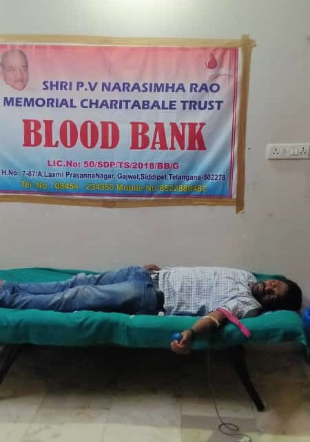 రక్తదానం మహాదానం అన్ని దానాలలోకెల్లా రక్తరక్తదానం మహాదానం దానం చాల గొప్పది. ప్రాణాలు కోల్పోయే స్థితి నుండి ఎంతోమంది ప్రాణాలను రక్షించవచ్చు. రక్తదానం చేయడంవల్ల కొత్త జీవితాన్ని ప్రసాదించవచ్చు.ఈ మాటలకు ఆదర్శంగా నిలిచారు యువ జర్నలిస్ట్ యాదగిరి . బుధవారం పీవీ నరసింహారావు చారిటబుల్ ట్రస్ట్ బ్లడ్ బ్యాంక్ గజ్వేల్ లక్ష్మక్క పల్లి ఆర్విఎం ఆస్పత్రిలో బీ నెగటివ్ పాజిటివ్ రక్తం అత్యవసరం ఉందని ఫోన్ ద్వారా వచ్చిన సమాచారానికి స్పందించి వెంటనే బ్లడ్ బ్యాంక్ వెళ్లి యాదగిరి రక్తం దానం చేశారు. ఈ సందర్బంగా ఆయన మాట్లాడుతూ ఏ ప్రాంతంలోనైనా కులమత బేధాలు లేకుండా ఎవరికైనా సరే అత్యవసర సమయంలో రక్తం అవసరం అనే సమాచారం తెలిస్తే రక్తదానం చేసి ప్రాణాలు కాపాడాలన్నారు. ఓ పేషెంట్ కి అత్యవసరంగా బీ నెగటివ్ రక్తం అవసరం ఉందని తెలియగానే వెంటనే వెళ్లి రక్తదానం చేయడం ఎంతో ఆనందంగా ఉందన్నారు. చాలామంది రక్తదానం చేయడం వలన అనారోగ్యానికి గురవుతామని అపోహ పడతారని దీనివల్ల రక్తదానం చేయడానికి ముందుకు రాలేకపోతున్నారు. కానీ వాస్తవానికి రక్తం దానం చేయడం వలన ఎలాంటి అనారోగ్యానికి గురికామన్నారు. మన శరీరంలో ఉండే పాత రక్త కణాలు తొలగిపోయి కొత్త రక్తకణాలు ఉత్పత్తి అవుతాయని వాటి ద్వారా ఉత్సాహంగా ఆరోగ్యంగా ఉంటామన్నారు. అత్యవసర సమయంలో రక్తదానం చేయడానికి మేము ఎల్లప్పుడూ సిద్ధంగా ఉంటామని ఎంతో మంది ప్రాణాలు రక్షించడానికి వీలుంటుందని అలా మన ద్వారా రక్తాన్ని స్వీకరించిన వారు కోలుకొని వారి ముఖములో వ్యక్తం చేసే సంతోషం గొప్ప వరంలాంటిదన్నారు.