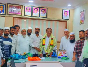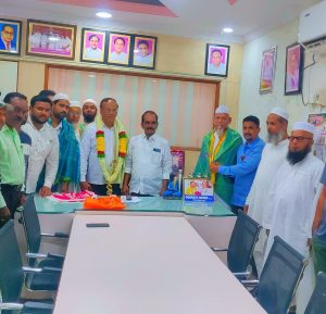 తెలంగాణ ముస్లిం ఏక్తా కమ్యూనిటీ యూత్ & సోషల్ వెల్ఫేర్ సొసైటీ ఆధ్వర్యంలో సొసైటీ అధ్యక్షులు షేక్ ముజాహిద్ సొసైటీ సభ్యులు అందరూ కలిసి శ్రీ హబీబ్ జిలాని తెలంగాణ ముస్లిం ఏక్తా అధ్యక్షులుగా మున్సిపాల్ చైర్మన్ సమక్షంలో పూలమాలవేసి శాలువాతో సన్మానం చేసి సొసైటీలో ఆహ్వానించడం జరిగింది. హాబీబ్ జిలాని మాట్లాడుతూ… ఈ సొసైటీలో అధ్యక్షులుగా నన్ను స్వీకరించినందుకు సొసైటీ అధ్యక్షులు షేక్ ముజాహిద్ కి సొసైటీ సభ్యులందరికీ కృతజ్ఞతలు తెలుపుకుంటున్నాను. ఈ సొసైటీలో ఎందుకు రావడం జరిగిందంటే నేను సొసైటీ యొక్క సేవ కార్యక్రమాలు ఎన్నో చూసాను దానికి ముద్దులై ఈ సొసైటీలో చేరడం జరిగింది. నేను ఎన్నో సొసైటీ సేవలు చూసాను కానీ ఈ సొసైటీ చేస్తున్న సేవా కార్యక్రమాలు రక్తదానం, గాని కరుణా సమయంలో చేసిన సేవలు గాని, మరియు పేద ప్రజలకు రేషన్ కిట్లు గానీ, ప్రభుత్వ ఆసుపత్రులలో నెలకొకసారి ఫ్రూట్ డిస్ట్రిబ్యూషన్ ప్రోగ్రాం గానీ, ఎన్నో కార్యక్రమాలు చేసినందుకు ఈ సొసైటీలో నాకు ఒక మంచి స్థానాన్ని ఇచ్చినందుకు సొసైటీ అధ్యక్షులు షేక్ ముజాహిద్ కి మరియు సభ్యులందరికీ ఎంతో రుణపడి ఉంటానని చెప్పడం జరిగింది. మరియు నా తరఫునుంచి కూడా అన్ని విధాలుగా సహాయ సహకారాలు అందిస్తానని మాట ఇస్తున్నాను. ఇలానే మనమందరం కలిసి పేద ప్రజలకు ఎన్నో సేవా కార్యక్రమాలు చేసి సొసైటీని ఇంకా ముందుకు నడిపించి ముందుకు వెళ్తామని ఆశిస్తున్నాను. మరియు నిర్మల్ ముస్లిం సహోదరులకు అన్ని విధాలుగా సేవలు అందిస్తానని ముస్లిం నిర్మల్ ప్రజలకు తెలియజేస్తున్నాను. ముందుగా నిర్మల్ ముస్లిం ప్రజలు ఒకటి ఐతేనే మనం ఆర్థికంగా గాని, రాజకీయంగా గాని, ముందుకు వెళ్తామని ఆశిస్తున్నాను. ఈ కార్యక్రమంలోయూసుఫ్ నీర్మలి , సీనియర్ విలేకరి వసీం షకిల్ , మాజీ జామా మజీద్ కమిటీ అధ్యక్షులు అజర్ , అడ్వకేట్ ఖ య్యుం., కౌన్సిలర్లు మతిన్ , సలీం , రఫీ , కౌన్సిలర్ రమణ, నరహరి ,మాజహర్ , అయ్యుబ్ ,సొసైటీ ప్రధాన కార్యదర్శి అల్మాస్ ఖాన్ , ఉపాధ్యక్షులు సాజిద్ , అమన్ జాయింట్ సెక్రటరీ జుబెర్, సొసైటీ సభ్యులు, మోయ్స్