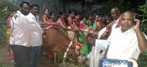 ఏకాదశి కార్తీక సోమవారం మంచి రోజని భావించిన మహిళలు గోమాతకు సీమంతం కార్యక్రమం నిర్వహించారు. గోమాతకు పూలమాలలు వేసి పత్యేకంగా అందంగా అలంకరించారు. అనంతరం గోమాత కు ఫలహారాలతో పాటు పండ్లు. పూలు, గాజులు, చీరలు, పసుగ్రాసం మంగళహారతులు సమర్పించి గోమాతకు పత్యేకపూజలు చేశారు.