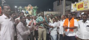 ముస్తాబాద్, మండల కేంద్రంలో సందడి వాతావరణం నెలకొంది. నవరాత్రులు పూజలందుకున్న గణనాథుని శోభాయాత్రలో భక్తి శ్రద్ధలతో గణపయ్యను నిమర్జనానికి తీసుకు వెళ్తున్న సందర్భంలో ముస్తాబాద్ గౌడసంఘం అధ్యక్షుడు తాళ్లపెళ్లి శ్రీనివాస్ గౌడ్ ఆధ్వర్యంలో గౌడ సంఘం సభ్యులు పాల్గొని భక్తిశ్రద్ధలతో గణపయ్యను పూజించి..’జై జై గణేశా’ అంటూ భజనలు చేస్తూ పాటలు పాడుకుంటూ నిమజ్జనానికి వెళుతుండే క్రమంలో సీఐ
