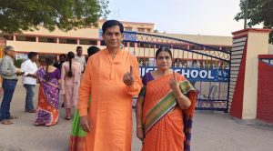 తెలంగాణ అసెంబ్లీ ఎన్నికల్లో భారతీయ జనతా పార్టీ మంచిర్యాల నియోజకవర్గంలో నుండి పోటీ చేస్తున్న ఎమ్మెల్యే అభ్యర్థి రఘునాథ్ తన హక్కును కార్మెల స్కూల్లో వినియోగించుకున్నారు.