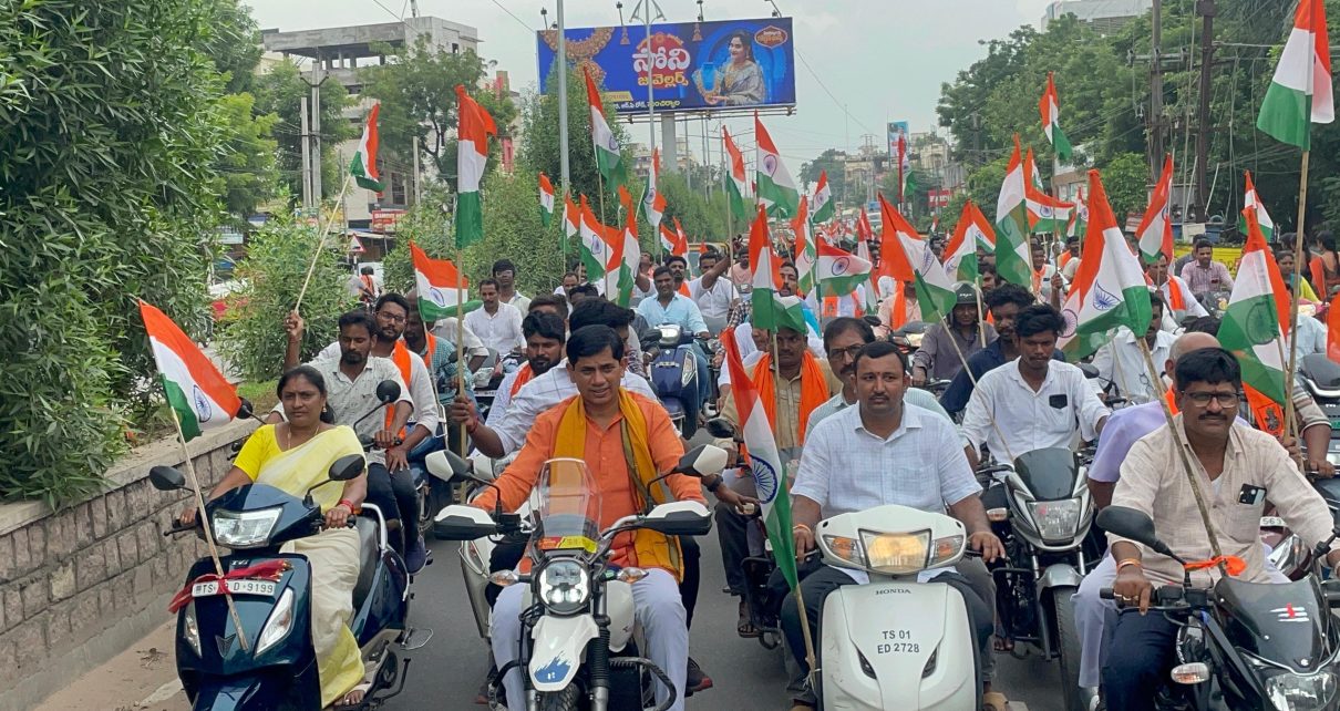 హార్ ఘర్ తిరంగ ర్యాలీ కార్యక్రమంలో భాగంగా ప్రధాన మంత్రి శ్రీ నరేంద్ర మోదీ సూచన మేరకు ఈరోజు మంచిర్యాల పట్టణంలో బీజేపీ యువ మోర్చ ఆధ్వర్యంలో నిర్వహించిన తిరంగా బైక్ ర్యాలీ లో బీజేపీ మంచిర్యాల జిల్లా అధ్యక్షులు రఘునాథ్ వెరబెల్లి గారు ముఖ్య అతిథిగా పాల్గొనడం జరిగింది. ఈ ర్యాలీలో బీజేపీ నాయకులు, యువకులు పెద్ద ఎత్తున జాతీయ జెండాలతో పాల్గొని ఐ బి చౌరస్తా, బెల్లంపల్లి చౌరస్తా, రైల్వే స్టేషన్, ముఖరమ్ చౌరస్తా, శ్రీనివాస్ టాకీస్ మీదుగా ఓవర్ బ్రిడ్జి శిశు మందిర్ పాఠశాల వరకు బైక్ ర్యాలీ నిర్వహించడం జరిగింది.