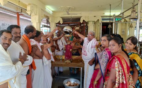 49 Viewsశ్రీ కన్యకాపరమేశ్వరి అమ్మవారికి పంచామృత అభిషేకం ఆర్యవైశ్య సంఘం ఆధ్వర్యంలో ప్రత్యేక పూజలు గజ్వేల్, నవంబర్ 17 మర్కూక్ మండలం పాములపర్తి గ్రామంలో శ్రీ సీతారామాంజనేయ స్వామి దేవాలయంలో ఆర్యవైశ్య సంఘం ఆధ్వర్యంలో గత ఐదు రోజులుగా శ్రీ కన్యకాపరమేశ్వరి అమ్మవారికి ఘనంగా పూజలు నిర్వహించారు.ఐదవ రోజు సోమవారం అమ్మవారికి పంచామృత అభిషేకం నిర్వహించి ప్రత్యేక పూజలు నిర్వహించారు.ఈ సందర్భంగా ఆర్యవైశ్య సంఘం సభ్యులు మాట్లాడుతూ విశేషమైన కార్తీక మాసంలో శ్రీ కన్యకాపరమేశ్వరి అమ్మవారికి ప్రత్యేక […]