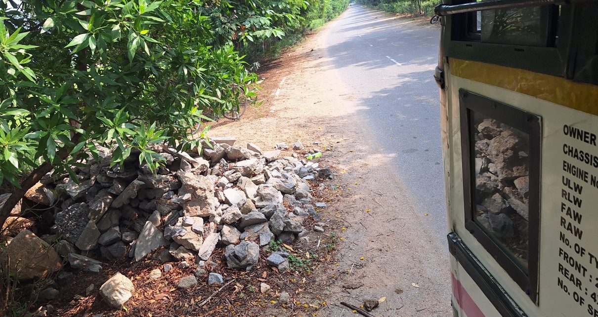 ముసాబాద్, అక్టోబర్ 5, (24/7న్యూస్ ప్రతినిధి): మండలంలో రోడ్లపై రైతులు వరి ధాన్యం ఆరబెట్టితే తక్షణమే ప్రజలకు ఎలాంటి ప్రమాదాలు జరగకుండా అధికారులు చర్యలు చేపట్టారు. ధాన్యం కంటే అతి ప్రమాదకరమైనవి రాయి కంకర ఇక ఒకరోజు కాదు రెండు రోజులు కాదు ఏకంగా నెలలు గడుస్తున్న రోడ్డుకు ఆనుకొని రాయి కంకరను ప్రజలు గమనించి తప్పు పడుతున్నారు. గూడెం గ్రామం కొంచెం దాటగానే ఆవునూరు వైపు కంకరకుప్ప ఏదో నిర్మాణం పోశారా లేదా కావాలని పోశారా ఓవైపు రోడ్డు ప్రమాదాలు జరుగుతున్న ఇంత నిర్లక్ష్యమాని మండిపడుతున్నారు. స్థానికులు రోడ్లపై వరిధాన్యం ఆరబోస్తేనే చర్యలు తీసుకుంటారా ఈ రాయి కంకర పోసిన వారిపై ఎలాంటి చర్యలు తీసుకోరాని బాటసారులు ప్రశ్నిస్తున్నారు. ఇప్పటికైనా సంబంధిత అధికారులు తక్షణమే చర్యలు తీసుకోవాలని స్థానికులు, ప్రయాణికులు కోరుతున్నారు.