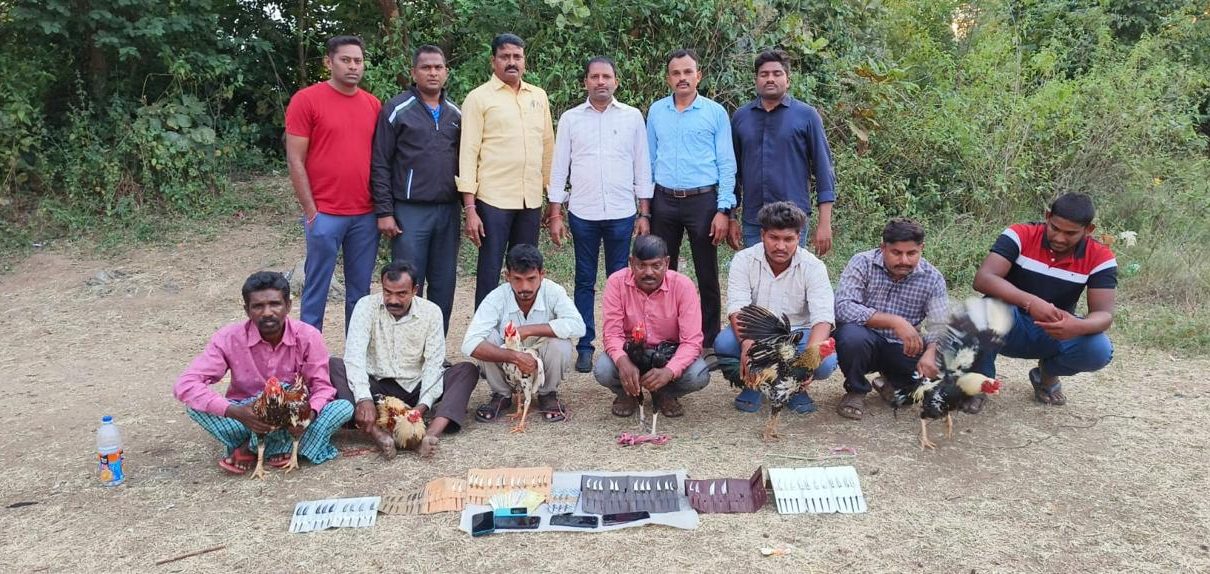 13 పందెం కోళ్లు ,60 కత్తులు, 05 మొబైల్స్ మరియు 6530/- నగదు స్వాధీనం.