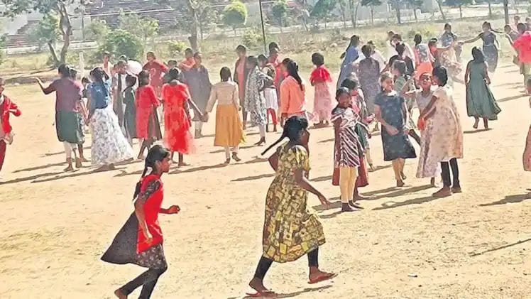 ఆట,పాటలతో గడుపుతున్న విద్యార్థినులు
