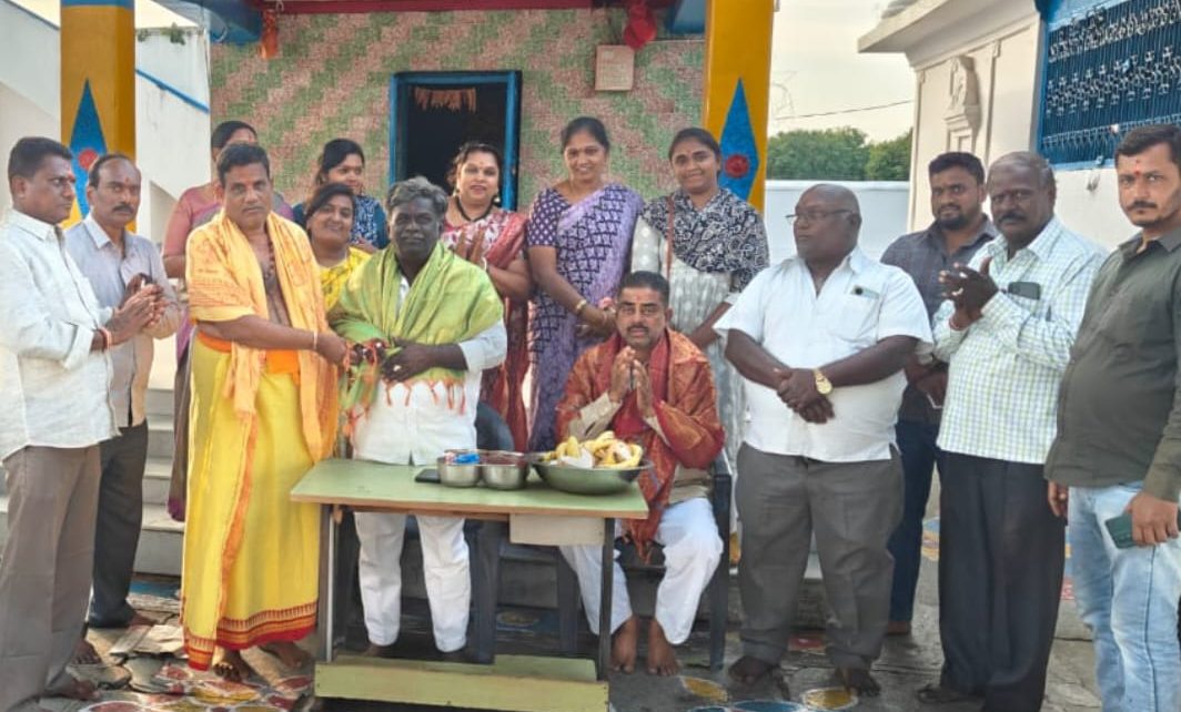 సిద్దిపేట జిల్లా గజ్వేల్ వ్యవసాయ మార్కెట్ కమిటీ డైరెక్టర్ సముద్రాల హరినాథ్, బుద్ధ సత్యపాల్ యాదాద్రి భువనగిరి జిల్లా కాచారం శ్రీ రేణుకా ఎల్లమ్మ దేవాలయంలో ప్రత్యేక పూజలు నిర్వహించారు ఈ సందర్భంగా రేణుకా ఎల్లమ్మ దేవాలయం వ్యవస్థాపక అధ్యక్షుడు ధార్మిక పరిషత్ రాష్ట్ర అద్యక్షుడు వంగపల్లి అంజయ్య స్వామి ఆధ్వర్యంలో సముద్రాల హరినాథ్ కు శాలువాతో సత్కరించి తీర్థ ప్రసాదాలు అందజేశారు అనంతరం అంజయ్య స్వామి మాట్లాడుతూ వ్యవసాయ మార్కెట్ కమిటీ డైరెక్టర్, ఆర్యవైశ్య మహాసభ సిద్దిపేట జిల్లా ప్రధాన కార్యదర్శి సముద్రాల హరినాథ్ వ్యాపారంలో రాజకీయాల్లో రాణిస్తూ సమాజ సేవలో ముందు వరుసలో ఉంటూ మంచి గుర్తింపు తెచ్చుకున్న సముద్రాల హరినాథ్ కు మంచి రాజకీయ భవిష్యత్తు ఉందని అన్నారు, అనంతరం సముద్రాల హరినాథ్ మాట్లాడుతూ, వంగపల్లి అంజయ్య స్వామి సేవలు అభినందనీయమని, ప్రజలను భక్తి మార్గం వైపు పయనించే విధంగా ఆధ్యాత్మిక కార్యక్రమాల నిర్వహిస్తూ ప్రతి మంగళవారం రేణుక ఎల్లమ్మ దేవాలయంలో భక్తులకు అన్నదానం అందజేస్తూ పలువురికి ఆదర్శంగా నిలుస్తున్నారని అన్నారు,