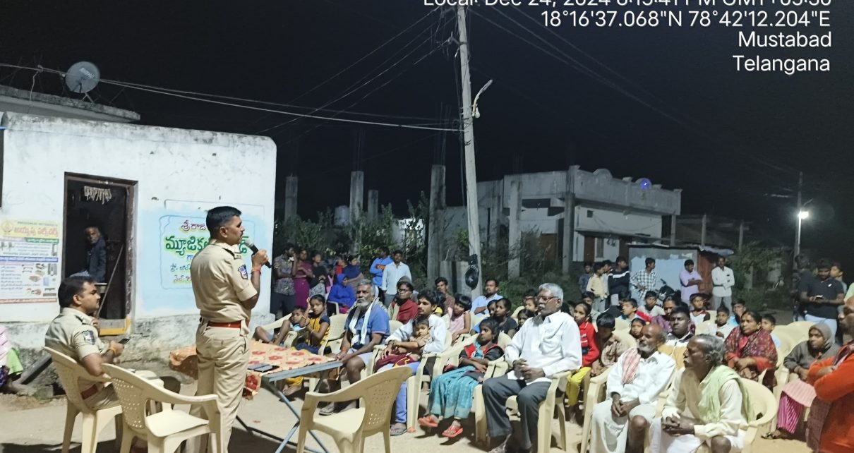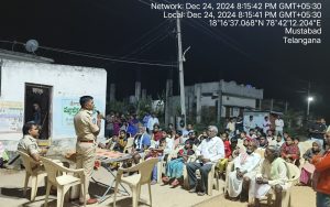ముస్తాబాద్, డిసెంబర్ 24 (24/7న్యూస్ ప్రతినిధి): ముస్తాబాద్ గ్రామంలోని డబుల్ బెడ్రూం కాలనీలో పోలీసు అధికారులు చేరుకొని సీసీ కెమెరాల ఏర్పాటు, రోడ్డు ప్రమాదాలు, కుల నిషేధం, సైబర్ నేరాలు పట్ల