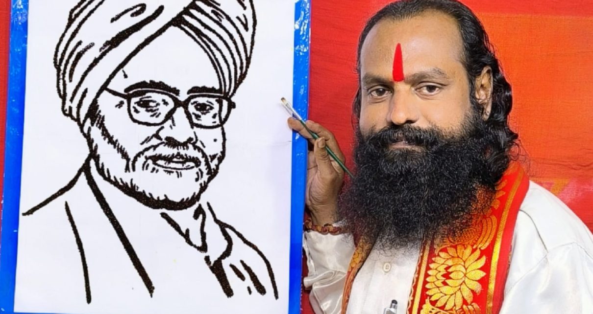భారత మాజీ ప్రధాని మన్మోహన్ సింగ్ మరణం బాధాకరమణి అయన చిత్రాన్ని అవాలతో అద్భుతంగా చిత్రించి రామకోటి కార్యాలయంలో ఆవిష్కరించి ఘన నివాళులు అర్పించారు సిద్దిపేట జిల్లా గజ్వేల్ పట్టణానికి చెందిన శ్రీరామకోటి భక్త సమాజం వ్యవస్థాప, అధ్యక్షులు, భక్తిరత్న, కళారత్న, సేవారత్న అవార్డు గ్రహీత రామకోటి రామరాజు