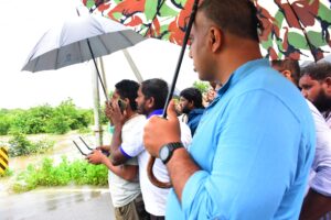 ఎగువ మానేరు ప్రాజెక్ట్ వద్ద చిక్కుకున్న వారిని రక్షణకు సహాయక చర్యలు కలెక్టర్ సందీప్ కుమార్ ఝా, ఎస్పీ మహేష్ బి గితే ఘటనా స్థలికి చేరుకున్న ఎస్డీఆర్ఎఫ్ బృందం గంభీరావుపేట మండలం ఎగువ మానేరు ప్రాజెక్టు వద్ద చిక్కుకున్న వారిని రక్షించేందుకు అన్ని సహాయక చర్యలు తీసుకుంటున్నట్లు కలెక్టర్ సందీప్ కుమార్ ఝా, ఎస్పి మహేష్ బి గితే తెలిపారు. నర్మాల వద్ద ఉన్న ఎగువ మానేరు ప్రాజెక్టు అవతలి వైపు పశువులను మేపేందుకు ఐదుగురు వెళ్లారు. ఇవతలి వైపు వచ్చేందుకు ప్రయత్నిస్తూ వారిలో ఒకరు గల్లంతు కాగా, మిగతా నలుగురు అక్కడే చిక్కుకుపోయారు. దీంతో కలెక్టర్ ఎస్పీ వెంటనే హుటాహటిన ప్రాజెక్ట్ వద్దకు చేరుకొని సహాయక చర్యలను ముమ్మరం చేశారు. ఎస్డీఆర్ఎఫ్ బృందాలు ఘటనాస్థలకి చేరుకొని చిక్కుకున్న వారికి ఆహారం, ఇతర సదుపాయాలు కల్పించేందుకు చర్యలు తీసుకుంటున్నట్లు వివరించారు.