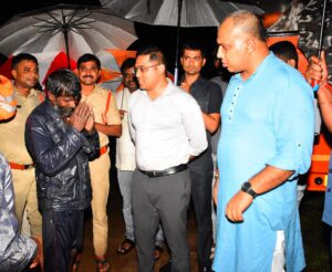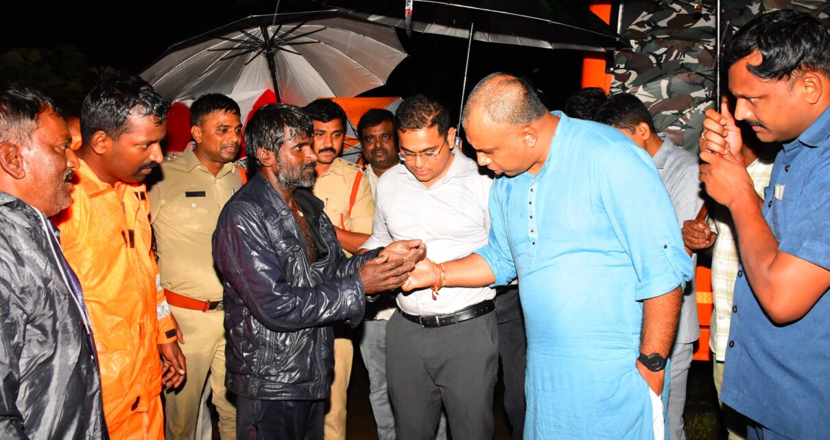 గంభీరావుపేట మండలం లింగన్నపేట గ్రామ శివారులో వరదలో చిక్కుకున్న ప్రవీణ్ ను సురక్షితంగా ఒడ్డుకు చేర్చిన ఎన్ డి ఆర్ ఎఫ్ బృందం.దగ్గరుండి సహాయక చర్యలను పర్యవేక్షించిన జిల్లా కలెక్టర్ సందీప్ కుమార్ ఝా, ఎస్పీ మహేష్ బి గితె.