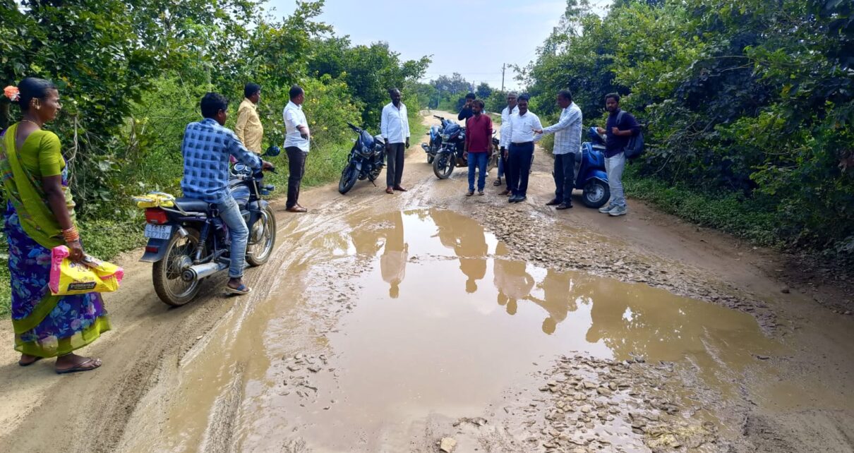 గుంతల రోడ్లను పరిశీలించిన డిప్యూటీ ఎగ్జిక్యూటివ్ ఇంజనీర్.