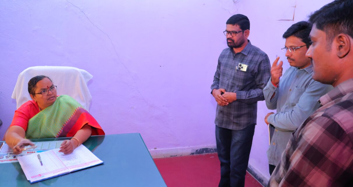 మీరుదొడ్డి మండలంలోని తహసిల్దార్ కార్యాలయాన్ని జిల్లా కలెక్టర్ ఆకస్మికంగా సందర్శించారు. తహసిల్దార్ అత్యవసర పనికై ఆర్డీఓ కార్యాలయం కి వెళ్ళారని సిబ్బంది కలెక్టర్ కి తెలిపారు. అటెండెన్స్ రిజిస్టర్ వెరిఫై చేశారు. కార్యాలయ సిబ్బంది సమయ వేళలు పాటించాలని ఆదేశించారు. భూ భారతి పెండింగ్ అప్లికేషన్స్ డిస్పోజల్ ప్రక్రియ ఎలక్ట్రోరల్ మ్యాపింగ్ ప్రక్రియ వేగవంతం చెయ్యాలని ఆదేశించారు.