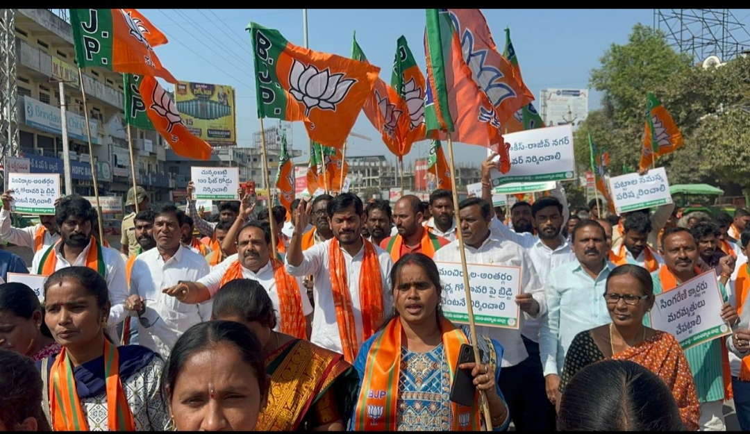 మంచిర్యాల మున్సిపల్ కార్పొరేషన్ లో నెలకొన్న సమస్యలను పరిష్కరించాలని మరియు కాంగ్రెస్ ప్రభుత్వం ఎన్నికల సమయంలో ఇచ్చిన హామీలను అమలు చేయాలని డిమాండ్ చేస్తూ ఈరోజు బీజేపీ ఆధ్వర్యంలో చేపట్టిన నిరసన ర్యాలీలో బీజేపీ రాష్ట్ర ఉపాధ్యక్షులు రఘునాథ్ వెరబెల్లి మరియు బీజేపీ మంచిర్యాల జిల్లా అధ్యక్షులు నగునూరి వెంకటేశ్వర్ గౌడ్ పాల్గొనడం జరిగింది. మంచిర్యాల ఐబీ చౌరస్తా నుండి ఓవర్ బ్రిడ్జి, శ్రీనివాస టాకీస్, ఆర్ పి రోడ్ నుండి మున్సిపల్ కార్యాలయం వరకు బీజేపీ శ్రేణులతో కలిసి ర్యాలీ చేపట్టిన అనంతరం మున్సిపల్ కార్యాలయం ఎదుట నిరసన వ్యక్తం చేయడం జరిగింది. కార్పొరేషన్ లో ఉన్న సమస్యలు శాశ్వత డంప్ యార్డ్, లక్ష్మిటాకీస్- రాజీవ్ నగర్ రైల్వే వంతెన నిర్మాణం, గోదావరి పై వంతెన నిర్మాణం, కాలనీల్లో డ్రైనేజీ, రోడ్ల, సింగరేణి పట్టాల సమస్యలు పరిష్కారించాలని మరియు ఎన్నికల సమయంలో ఇచ్చిన హామీలను అమలు చేయాలని కార్పొరేషన్ అధికారులకు రఘునాథ్ మెమోరాండం అందించడం జరిగింది.
