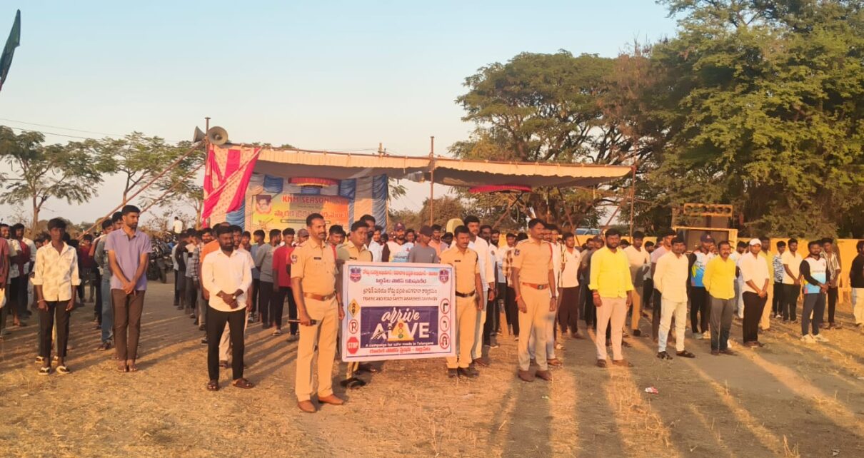 సిద్దిపేట పోలీస్ కమిషనర్ ఆదేశాల మేరకు, జిల్లా వ్యాప్తంగా నిర్వహిస్తున్న ‘అరైవ్ అలైవ్’ (అరైవ్ అలైవ్ ) కార్యక్రమంలో భాగంగా ఆదివారం నారాయణరావుపేట మండల కేంద్రంలో రోడ్డు భద్రతపై అవగాహన సదస్సు నిర్వహించారు. సిద్దిపేట రూరల్ సీఐ శ్రీను,సిద్దిపేట రూరల్ ఎస్ఐ రాజేష్, ఈ కార్యక్రమంలో పాల్గొని వాహనదారులకు రోడ్డు నిబంధనలపై దిశానిర్దేశం చేశారు.ఈ సందర్భంగా సిద్దిపేట రూరల్ సిఐ శ్రీను, మాట్లాడుతూ. ద్విచక్ర వాహనదారులు తప్పనిసరిగా నాణ్యమైన హెల్మెట్ ధరించాలని, ఇది ప్రమాద సమయంలో ప్రాణరక్షణ కవచంలా పనిచేస్తుందని సీఐ శ్రీను, పేర్కొన్నారు. మద్యం మత్తులో వాహనాలు నడపడం వల్ల మీ ప్రాణాలతో పాటు ఇతరుల ప్రాణాలను కూడా ప్రమాదంలో పడేసిన వారవుతారని సూచించారు. రోడ్డు ప్రమాదాల నివారణే లక్ష్యంగా పోలీసులకు సహకరించి ప్రమాద రహిత సిద్దిపేట జిల్లాగా తీర్చిదిద్దాలని పిలుపునిచ్చారు.సిద్దిపేట్ రూరల్ పోలీస్ స్టేషన్ ఎస్ఐ రాజేష్, మాట్లాడుతూ.గ్రామీణ రోడ్లపై అతివేగంతో వెళ్లడం, ఓవర్లోడింగ్తో ప్రయాణించడం వల్ల ప్రమాదాలు జరుగుతున్నాయని, ప్రతి ఒక్కరూ ట్రాఫిక్ నిబంధనలు పాటించాలని కోరారు. తక్కువ వయస్సు ఉన్న పిల్లలకు వాహనాలు ఇవ్వరాదని, ఒకవేళ మైనర్లు వాహనాలు నడుపుతూ పట్టుబడితే తల్లిదండ్రులపై కఠిన చర్యలు తీసుకుంటామని ఎస్ఐ రాజేష్, హెచ్చరించారు .ఈ కార్యక్రమంలో స్థానిక పోలీస్ సిబ్బంది, వాహనదారులు గ్రామస్థులు పాల్గొన్నారు.