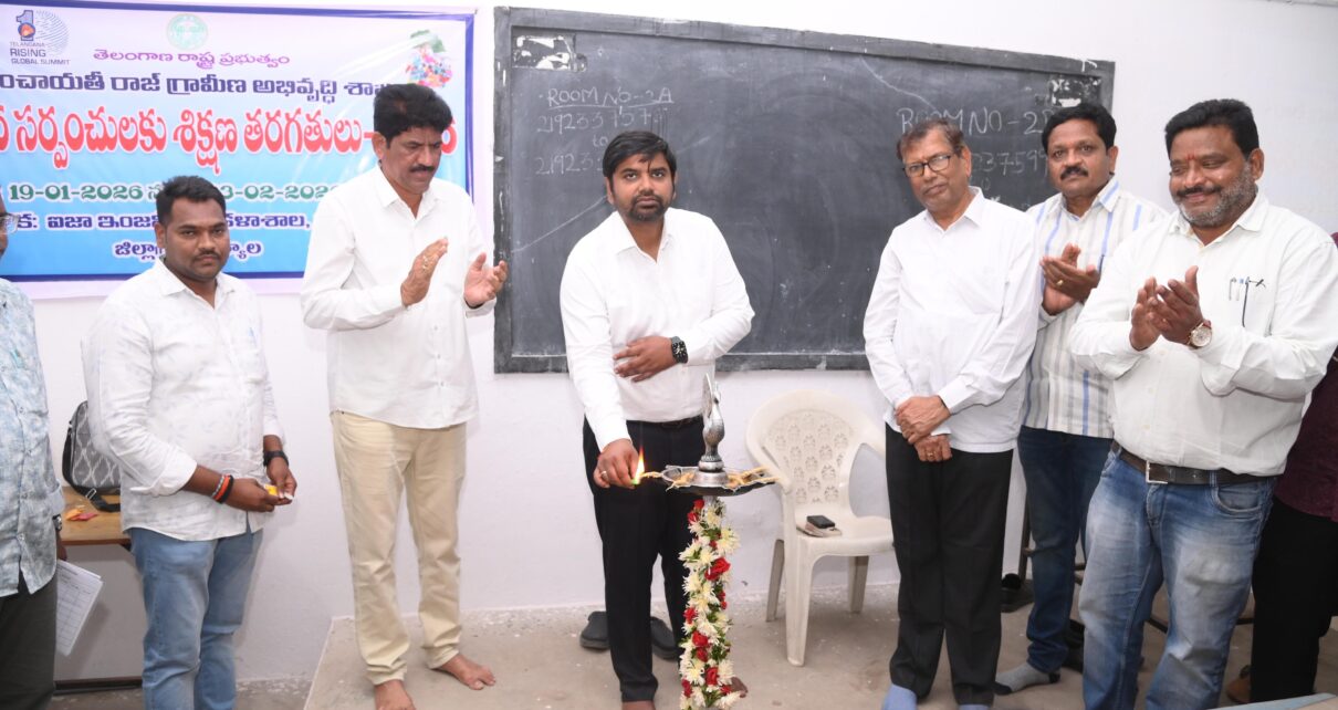గ్రామ స్వరాజ్యాన్ని బలోపేతం చేయడమే లక్ష్యంగా నూతనంగా ఎన్నికైన సర్పంచ్ లు పరిపాలన సాగించాలని జిల్లా కలెక్టర్ కుమార్ దీపక్ అన్నారు. సోమవారం జిల్లాలోని హాజీపూర్ మండలం ముల్కల్లా లో గల ఐజా ఇంజనీరింగ్ కళాశాలలో నూతన సర్పంచ్ లకు ఏర్పాటు చేసిన శిక్షణ కార్యక్రమానికి జిల్లా పంచాయతీ అధికారి వెంకటేశ్వర్ రావు, జిల్లా పరిషత్ ముఖ్య కార్యనిర్వహణ అధికారి గణపతి లతో కలిసి హాజరయ్యారు. ఈ సందర్భంగా జిల్లా కలెక్టర్ మాట్లాడుతూ గ్రామ స్వరాజ్యాన్ని బలోపేతం చేయడమే లక్ష్యంగా పని చేస్తూ పంచాయత వ్యవస్థను మరింత సమర్ధవంతంగా తీర్చిదిద్దేందుకు కృషి చేయాలని తెలిపారు. గ్రామస్థాయిలో ప్రజల ఆశయాలను నెరవేర్చే బాధ్యత సర్పంచ్ లదే అని, ప్రభుత్వ పథకాలు, ఆర్థిక వ్యవస్థ, పాలన విధానాలు, నిబంధనలు, నిర్వహణ అంశాలలో పూర్తి పరిజ్ఞానం కలిగి ఉండడం అవసరమని తెలిపారు. శిక్షణలో గ్రామ పంచాయతీ విధులు, అధికారాలు, గ్రామ అభివృద్ధి ప్రణాళిక తయారీ విధానం, కేంద్ర, రాష్ట్ర ప్రభుత్వ పథకాలు – అమలు విధానం, ఆర్థిక నిర్వహణ, బడ్జెట్ తయారీ, ఖాతాల నిర్వహణ, గ్రామ పంచాయతీ రికార్డులు, రిజిస్టర్లు, డిజిటల్ సర్వీసులు, ప్రజాసేవలో పారదర్శకత, బాధ్య, మహిళా సాధికారత, సామాజిక న్యాయం, సమానత్వం, స్వచ్ఛ భారత్, హరిత హారం, పరిశుభ్రత కార్యక్రమాలు, ప్రజలతో సంబంధాలు – వినతులు, ఫిర్యాదుల పరిష్కారం, గ్రామస్థాయిలో నాయకత్వ లక్షణాలు వంటి అంశాలపై అవగాహన కల్పించడం జరుగుతుందని తెలిపారు. గ్రామస్థాయిలో పరిపాలన సమర్థవంతంగా అమలు చేసేందుకు అవసరమైన నైపుణ్యం, జ్ఞానం అందించడం జరుగుతుందని తెలిపారు. గ్రామ పాలనలో నూతన దృక్పథంతో ముందుకు సాగేందుకు శిక్షణ తోడ్పడుతుందని, సంబంధిత మండలాలకు చెందిన సర్పంచ్ లు నిర్ణీత తేదీ, సమయం, స్థలం లో తప్పనిసరిగా హాజరుకావాలని తెలిపారు. శిక్షణ కార్యక్రమం గ్రామాభివృద్ధికి అత్యంత కీలకమైనదని, శిక్షణలో నేర్చుకున్న అంశాలను అమలు చేయాలని తెలిపారు.