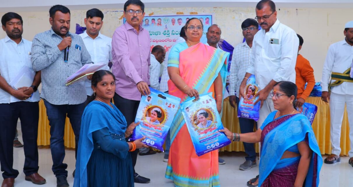 ఈవ్వడంజరుగుతుంది.వడ్డీలేని రుణాలు గజ్వేల్ అర్బన్ లో 1 కోటి 28 లక్షల ఆయా గ్రూపులకు అందజేయడం జరిగింది.ఇందిరమ్మ చీరలు పంపిణీ పట్టణంలో చేయడం 18 సంవత్సరాల నిండిన ప్రతి మహిళకు ఇందిరమ్మ చీరకు హర్హులే గ్రూపులో ఉన్న వాళ్ల కి మాత్రమే ఇస్తారనే అపోహ వద్దని తెలిపారు.మీ వార్డుల వాళ్లుగా అర్హత గల ప్రతి మహిళలకు అధికారులు చీరల పంపిణీ లో చేస్తారని వార్డు మహిళలు పెద్ద ఎత్తున కార్యక్రమంలో పాల్గొనాలని తెలిపారు.ప్రభుత్వం అందించే అన్ని పథకాలను స్వీకరించి మహిళలకు ఉన్నత స్థాయికి ఎదిగే విధంగా లబ్ది పొందాలని తెలిపారు.అనంతరం అధికారులతో కలిసి మహిళలకు ఇందిరమ్మ చీరలను అందజేశారు.
