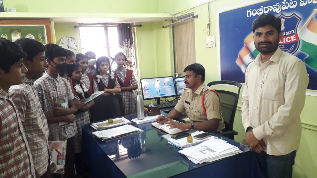 రాజన్న సిరిసిల్ల జిల్లా గంభీరావుపేట మండలం దమ్మన్నపేట్ గ్రామం లోని జిల్లా పరిషత్ ఉన్నత పాఠశాల శుక్రవారం 8 వ తరగతి విద్యార్థి ని విద్యార్థులు లా అండ్ జస్టిస్ అనే పాఠ్యాంశం సందర్భంగా విద్యార్థులకు ప్రత్యక్ష అనుభవం మరియు అనుభూతి నిమిత్తం గంభీరావుపేట పోలీస్ స్టేషన్ ని సందర్శించడం జరిగింది అనీ ఇన్చార్జి ప్రధానోపాధ్యాయురాలుఆశ్రతబస్సుంతెలిపారు అక్కడ స్వయంగా గంభీరావుపేట ఎస్సై మహేష్ పోలీస్ వ్యవస్థ మరియు నిందితులను గుర్తించడం మరియు కోర్టులో శిక్షపడే విధానం గురించి క్లుప్తంగా వివరించి స్టేషన్ మొత్తాన్ని రికార్డులను చూపించడం జరిగిందని సాంఘిక శాస్త్ర ఉపాధ్యాయుడు దాసరి శ్రీధర్ తెలిపారు ఈ సందర్భంగా పాఠశాల ప్రధానోపాధ్యాయుడు భోయన్నగారి నారాయణ మాట్లాడుతూ పిల్లలకు ప్రత్యక్ష సందర్శన అనుభవం అనేటువంటిది శిక్షణ పొందిన ఉపాధ్యాయునిగా ఉంటుంది అని తెలిపారు పాఠ్యాంశాలకు ఇంతకుముందు కూడా రైతులు గడ్డిని కాల్చడాన్ని ప్రత్యక్ష అనుభవంతో పిల్లల్ని పంట పొలాలకు తీసుకువెళ్లి కాలుష్యానికి కారణం ఎట్లా అవుతుందో వివరించడం జరిగింది ఈ విధంగా విద్యార్థులకు పూర్తిగా అనువాపూర్వకమైనటువంటి విద్యా బోధన అనేటువంటి అభినందనీయమని ప్రధానోపాధ్యాయులు బోయన్న గారి నారాయణ మరియు ఉపాధ్యాయ బృందం ఉపాధ్యాయుడిని అభినందించారు ఇట్టి కార్యక్రమంలో 8వ తరగతి విద్యార్థిని విద్యార్థులు సాంఘిక శాస్త్ర ఉపాధ్యాయులు దాసరి శ్రీధర్ తదితరులు పాల్గొన్నారు