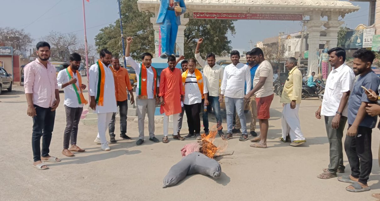 *వర్గల్ మండల కేంద్రంలో బీజేవైఎం ఆధ్వర్యంలో అంబేద్కర్ చౌరస్తా లో” బి ఆర్ఎస్ రాష్ట్ర ప్రభుత్వ దిష్టిబొమ్మను దహనం చేయడం జరిగింది*
