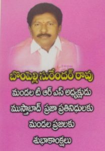 బి,ఆర్,ఎస్, పార్టీ ప్రజా ప్రతినిధులు ఏఎంఆర్ గార్డెన్ లో ప్రత్యేక సమావేశం కలదు అని మండల అధ్యక్షులు బొంపల్లి సురేందర్ రావు…
