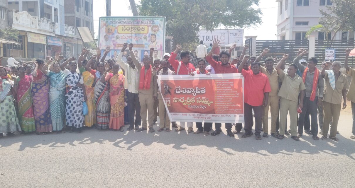 8 Viewsముస్తాబాద్, ఫిబ్రవరి12 (24/7న్యూస్ ప్రతినిధి) కార్మిక వ్యతిరేక 4 లేబర్ కోడ్ లను ఉపాధిహామీ పథకంతో కుదింపు, విద్యుత్ బిల్లు 2025 సవరణ రద్దుచేయాలని మండలంలో నినాదాలతో కార్మిక నాయకులు ర్యాలీ చేశారు. ఈ సందర్భంగా సిపిఐ మాజీ జిల్లా కార్యదర్శి గుంటి వేణు, మీసా లక్ష్మణ్, ఎస్ఎఫ్ఐ జిల్లా అధ్యక్షుడు కుర్రరాకేష్ మాట్లాడుతూ కేంద్ర ప్రభుత్వం చేస్తున్న విధానాలపై కార్మికుల పొట్టకొట్టే పరిస్థితిని కేంద్ర ప్రభుత్వం తీసుకువస్తుందన్నారు. 2025 విద్యుత్తు సవరణ చట్టం బిల్లును […]