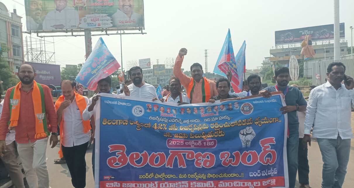 19 Viewsబీసీ ప్రజల ఆకాంక్షలను చాటి చెప్పిన బిసి బంద్ బీసీ లో పాల్గొన్న ప్రజలకు , బీసీ జేఏసీ బీసీ జేజేలు. మంచిర్యాల జిల్లా. ఈరోజు బీసీ ప్రజల దశాబ్దాల పోరాట ఫలితంగా స్థానిక సంస్థలు 42% రిజర్వేషన్లను అడ్డుకుంటున్న అగ్రవర్ణ ఆధిపత్యాలను వ్యతిరేకంగా ఈరోజు రాష్ట్ర వ్యాప్తంగా బీసీ జేఏసీ ఆధ్వర్యంలో బంధు సంపూర్ణంగా విజయవంతమైంది అందులో భాగంగా మంచిర్యాల జిల్లా వ్యాప్తంగా కూడా ప్రజలందరూ, వ్యాపార వాణిజ్య విద్యా సంస్థలు , ముఖ్యంగా […]