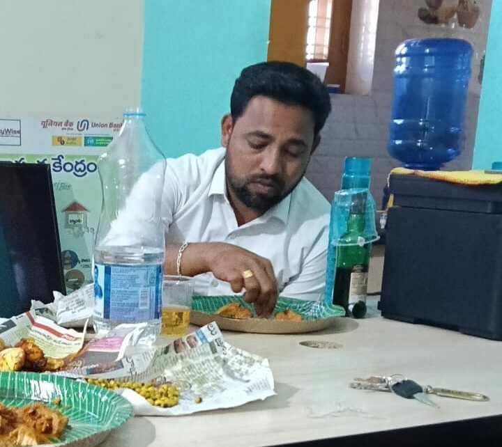 విధుల్లో ఉండి ఆఫీస్ లోనే చికెన్ మందు తెప్పించుకుని తాగుతున్న క్లస్టర్ కో ఆర్డినేటర్ విజయ్