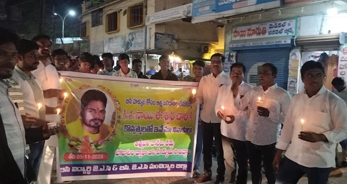 25 Viewsబలిదానాలు వద్దు, పోరాటాల ద్వారాన బీసీ హక్కులు సాధిస్తాం – సాయి చారి మృతికి తీవ్ర సంతాపం. – బీసీ జేఏసీ జిల్లా కన్వీనర్ ఒడ్డేపల్లి మనోహర్ – బీసీ విద్యార్థి జేఏసీ నాయకుడు సల్మాన్ ఖాన్, నితీష్. మంచిర్యాల జిల్లా. బీసీల హక్కుల కోసం, ప్రభుత్వలు హామీ ఇచ్చిన 42% రిజర్వేషన్ అమలు చేయాలని, రాజకీయ పార్టీల మోసాలకు నిరసనగా పెట్రోల్ పోసుకొని ఆత్మహత్య చేసుకున్న సాయి చారి మృతి పట్ల బీసీ విద్యార్థి […]