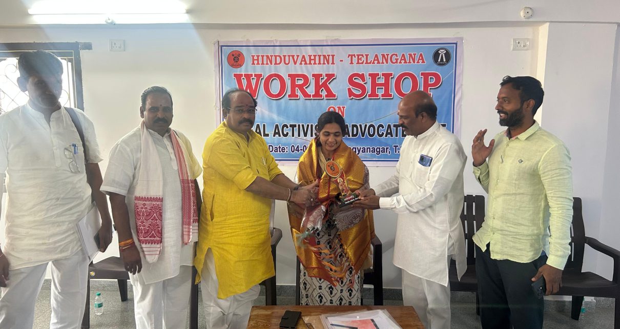 58 Viewsమంచిర్యాల జిల్లా. పేరం అలేఖ్య కు సన్మానం చేసిన హైకోర్టు న్యాయవాదులు. నేడు హిoదూ వాహిని తెలంగాణ వర్క్ షాప్ లో భాగంగా లీగల్ యాక్టివిజం అడ్వకేట్ రోల్ కార్యక్రమంలో హైకోర్టు న్యాయవాదుల చేతుల మీదుగా హైకోర్టు న్యాయవాదులు హరిశ్చంద్ర రెడ్డి మరియు రాజ వర్ధన్ రెడ్డి ఉప్పల రాజు చేతుల మీదుగా మంచిర్యాల జిల్లా న్యాయవాది పేరం అలేఖ్యకు సేవలో భాగంగా ఫ్యామిలీ కౌన్సిలింగ్ లో భాగంగా సన్మానం చేయడం మరియు షీల్డ్ బహుకరించడం […]