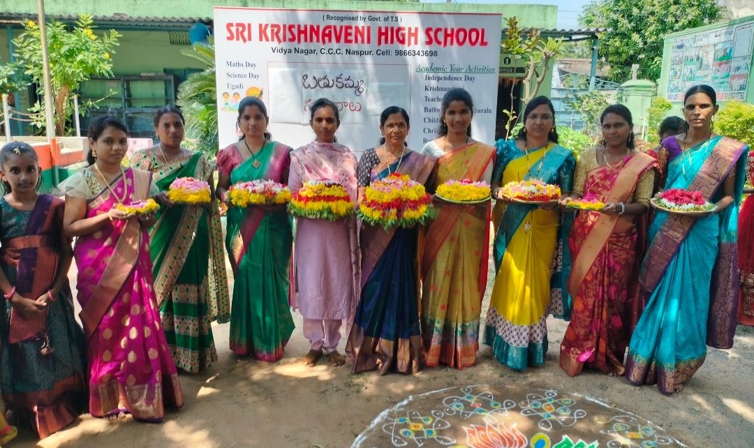 శ్రీకృష్ణవేణి స్కూల్లో ఎంగిలిపూల బతుకమ్మ వేడుకలు