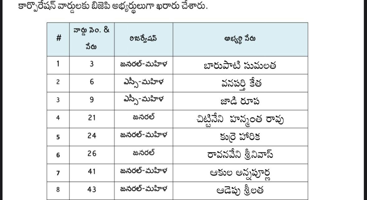 మంచిర్యాల మున్సిపల్ కార్పొరేషన్ బీజేపీ అభ్యర్థుల మొదటి జాబితా విడుదల చేసిన బీజేపీ రాష్ట్ర అధ్యక్షులు రాంచందర్ రావు