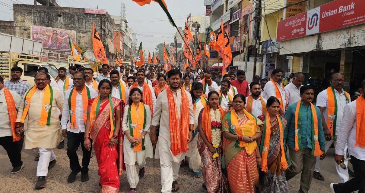 32 Viewsమంచిర్యాల మున్సిపల్ కార్పొరేషన్ పై బీజేపీ జెండా ఎగరడం ఖాయం- ఎమ్మెల్సీ మల్క కొమురయ్య . మంచిర్యాల జిల్లా. మున్సిపల్ ఎన్నికల సందర్భంగా మంచిర్యాల మున్సిపల్ కార్పొరేషన్ 60 డివిజన్ల బీజేపీ అభ్యర్థులు మరియు బీజేపీ శ్రేణులతో కలిసి మంచిర్యాల పట్టణం విశ్వనాథ ఆలయం నుండి జిల్లా కలెక్టర్ కార్యాలయం వరకు నిర్వహించిన బీజేపీ విజయ సంకల్ప ర్యాలీలో టీచర్స్ ఎమ్మెల్సీ మల్క కొమురయ్య , బీజేపీ జాతీయ నాయకులు ప్రేమేందర్ రెడ్డి , బీజేపీ […]